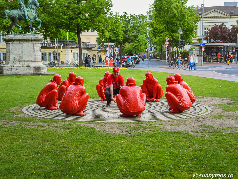 Außer Liegende mit Frucht haben wir uns auch mit Das Meeting, dem Werk des Künstlers Wang Shugang aus Peking, getroffen. Auch dieses Kunstwerk entging nicht den „komischen“ Ereignissen. Das Treffen der kleinen roten Männer findet am Schönleinsplatz statt. Aufgrund der Lage kam es zu einem Streit zwischen dem Künstler und der Stadt Bamberg, so dass Wang Shugang eines Nachts heimlich kam und mit seinen roten Männern weg war. Weil man es nicht für normal hielt, Steuergeld zu verwenden, organisierte die Stadt Bamberg eine Spendenaktion, sammelte den Geldbetrag, der für den Kauf des Kunstwerks benötigt wurde, und die Roten trafen sich erneut in Bamberg.