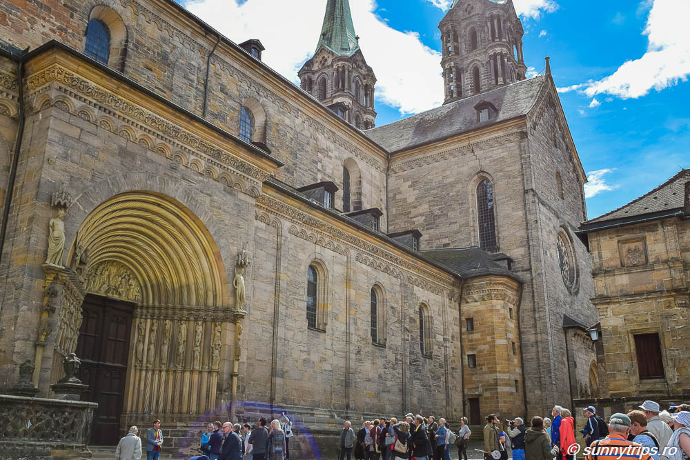 Der bekannteste der 7 Hügel ist der Domberg. Auf dem Domplatz trafen wir drei der wichtigsten Sehenswürdigkeiten der Stadt. Die Kathedrale St. Peter und Georg ist eine der 8 kaiserlichen Kathedralen in Deutschland. Es wurde von Kaiser Heinrich II. gegründet, der hier mit seiner Frau begraben wurde. Hier ist auch Clemens II., der einzige außerhalb Italiens beerdigte Papst, begraben. Bevor Clemens auf Befehl seines Nachfolgers vergiftet wurde, war er Bischof von Bamberg gewesen.
