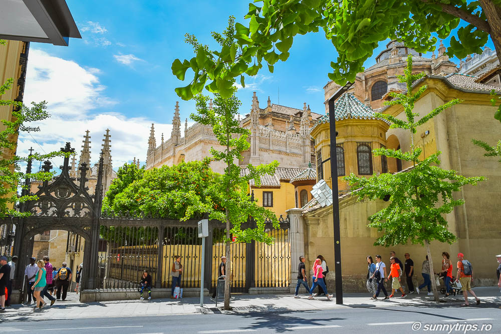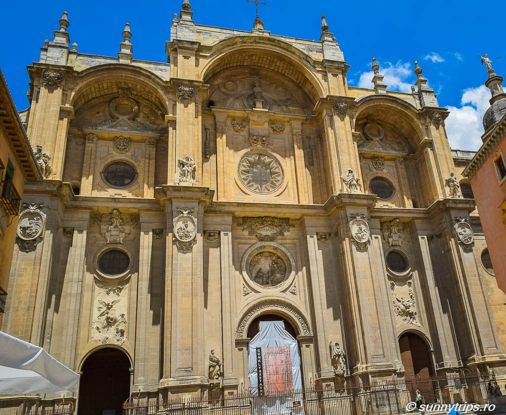 Ne-am continuat plimbarea pe Calle Gran Via de Colon și am ajuns la Catedrală care este, alături de Alhambra, unul dintre cele mai importante obiective turistice din Granada. Catedrala ne-a impresionat cu fațada sa grandioasă. Construcția ei a început în anul 1523 și a durat 181 de ani. Nu am văzut din păcate interiorul Catedralei. Obișnuiți cu regulile din Germania, unde accesul în biserici și catedrale este gratuit pentru oricine, am fost surprinși că în Spania turiștii trebuie să plătească pentru a intra într-o catedrală. Intrarea costa 5 euro. Nu este o sumă mare, dar ni s-a părut o măsură discriminatorie, având în vedere că rezidenții aveau accesul gratuit. Până la urmă, chiar și ca turist ar trebui să ai libertatea de a te ruga într-o biserică fără să plătești o anumită taxă. Așa că, în Andaluzia, nu am văzut nici o catedrală pe interior, exceptând Mezquita din Cordoba.
