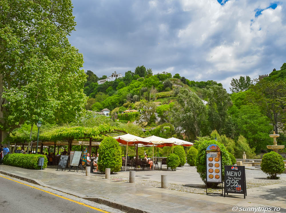 Dacă prima parte a zilei am rezervat-o pentru Alhambra, a doua parte a zilei am folosit-o pentru a ne plimba prin orașul de la poalele munților Sierra Nevada. Am ieșit de la Alhambra prin Poarta Justiției și am pornit pe jos spre centrul orașului, coborând pe strada Cuesta de Gomerez. Cea mai mare parte a drumului, până la Puerta de las Granadas, trece printr-o pădure.